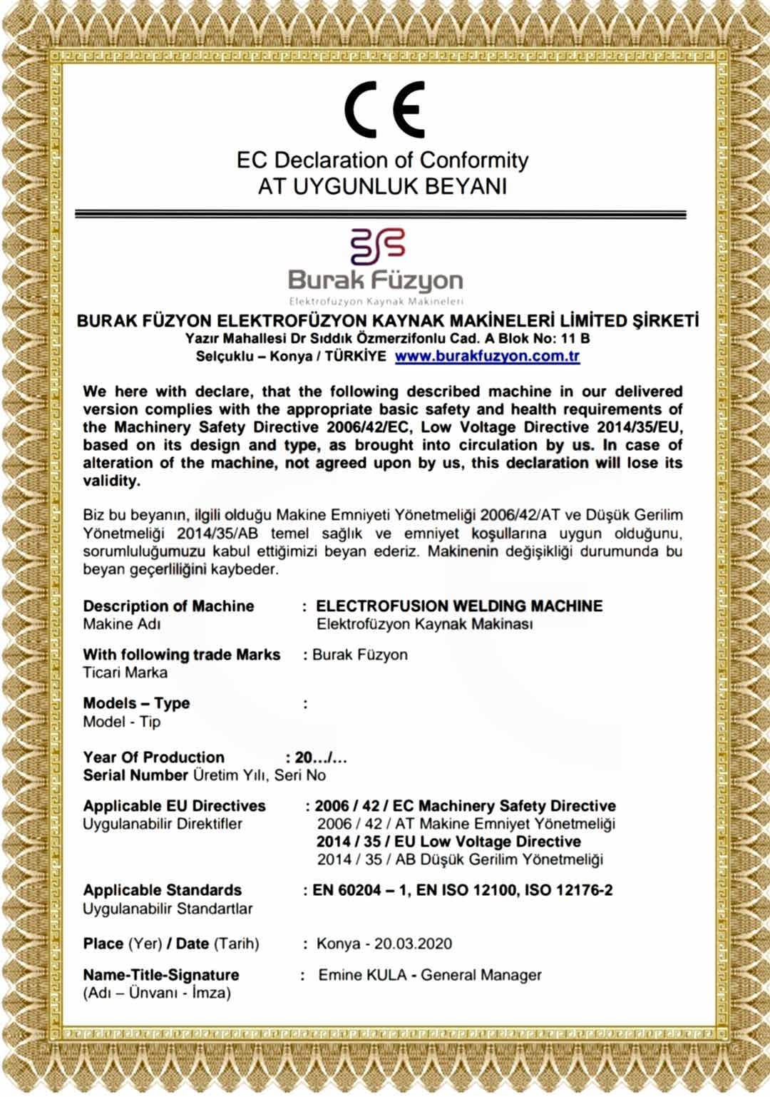 Burak Füzyon Elektrofüzyon Polietilen Kaynak Makinalari İmalatı